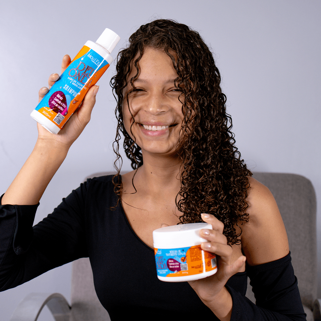 Defina, modele e controle o frizz com o Ativador Deu Onda. Ideal para todos os tipos de cachos, oferece hidratação intensa, leveza e movimento duradouro. 🔄